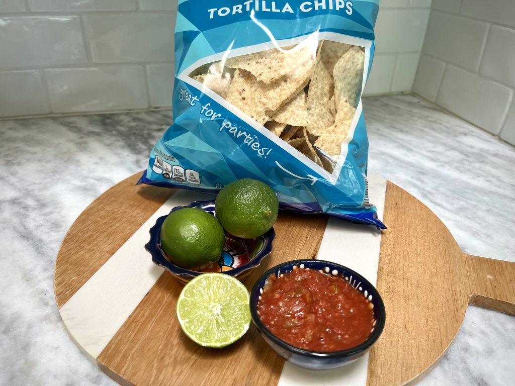 A big bag of tortilla chips, along with jalapeños, poblanos, and limes, are all the makings of one of my favorite easy snacks.