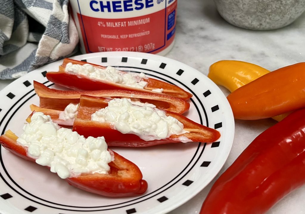 For some easy protein with little prep, I’ve been loving cottage cheese stuffed peppers.