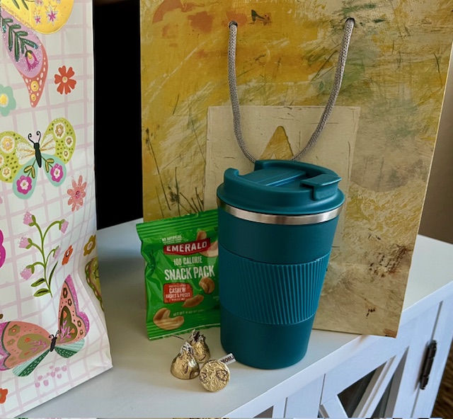 Men are always much more difficult to buy for, but my BIL likes to drink his coffee in a thermal cup (so do I!) so I ordered one and gifted that with snacks.
