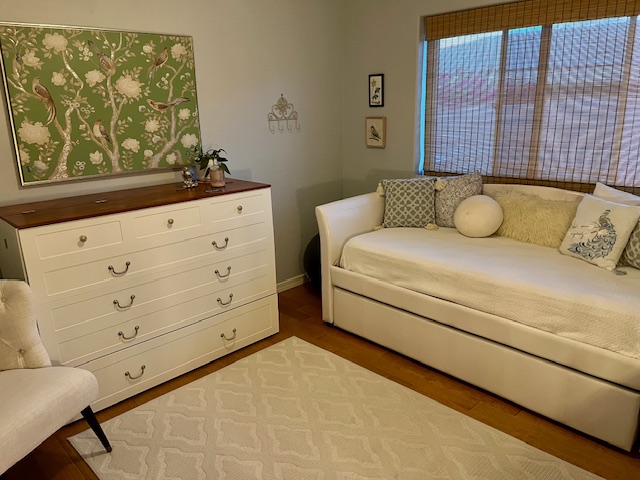 We ended up leaving the daybed/trundle in the room so that our guests could have options when selecting where they would sleep.
