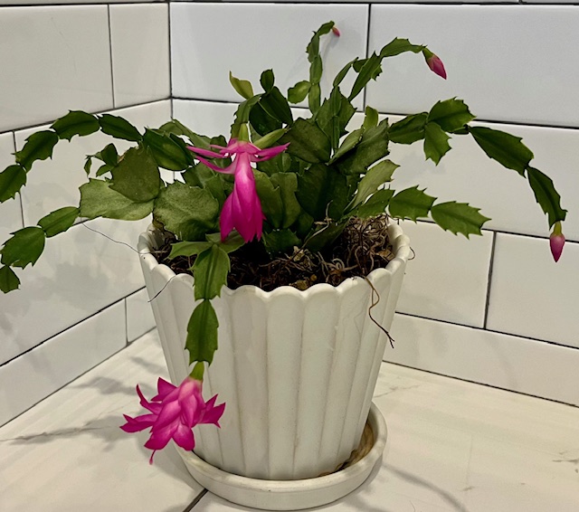 P.S. The Christmas cactus Barb gave me 100 years ago is blooming! It lives in the bathroom with all the pills and I couldn’t resist snapping a pic.