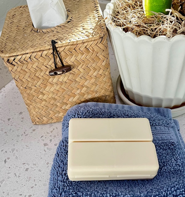 Instead of dozens of bottles on the countertop, hub and I use two options for storing and dispensing our daily pills.