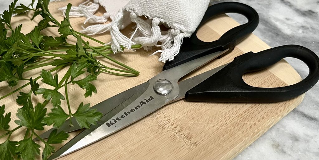 I finally replaced them with these KitchenAid shears for all of eight dollars, and what a difference. They glide through everything—herbs, packaging, even tougher items—with no effort at all.
