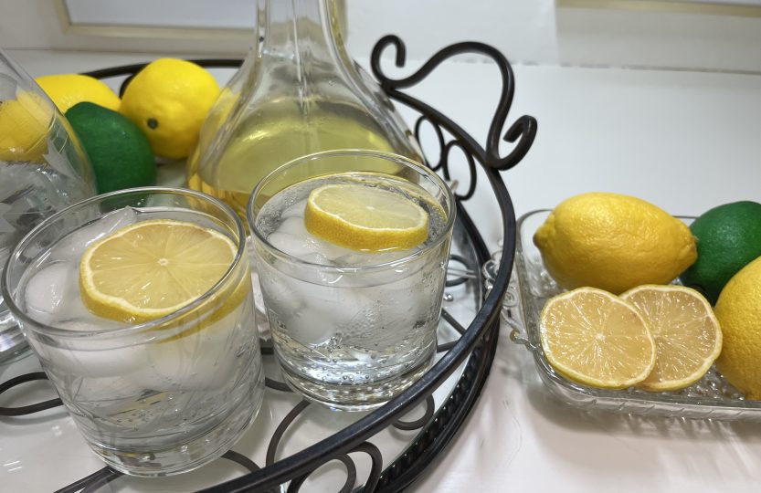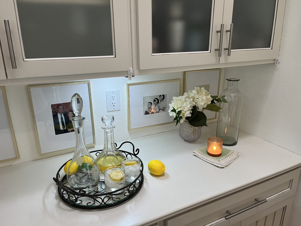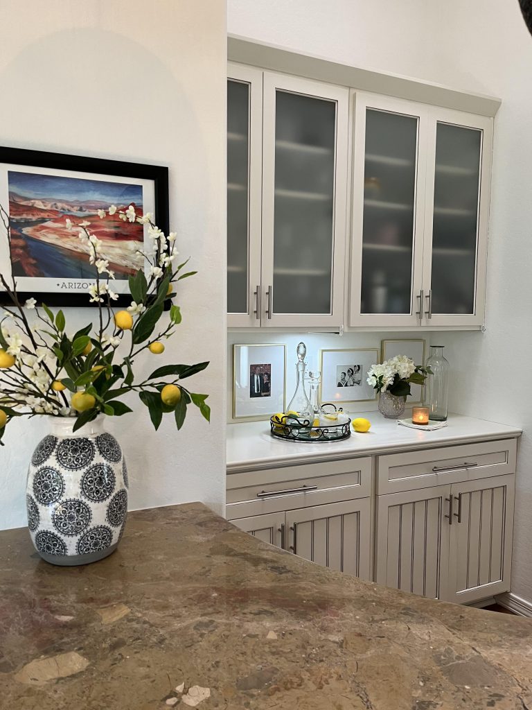 Back at home, I spent a little time refreshing our bar area for spring. Nothing complicated — A few lemons, greenery, and a couple of crystal decanters were enough to make the whole space feel lighter.