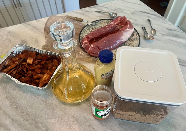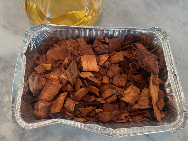 Bourbon Brown Sugar Smoked Pork Loin uses wood chips soaked and then steamed on the grill during cooking. Hub found apple chips and they made such a nice aroma while the meat was grilling.