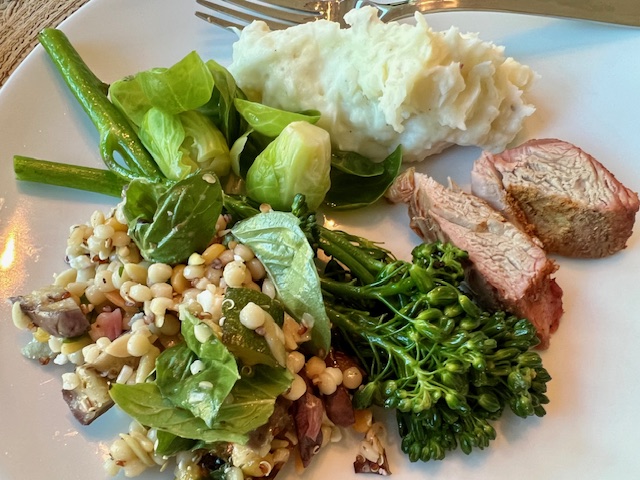 Hub’s mashed potatoes and fresh steamed Brussels sprouts rounded out the menu. We could have done with a bit less food, but it was so nice eating the veggies while they were so fresh.