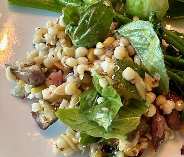 In lieu of orzo, I used the Trader Joe’s Harvest Blend that I shared in this recipe.