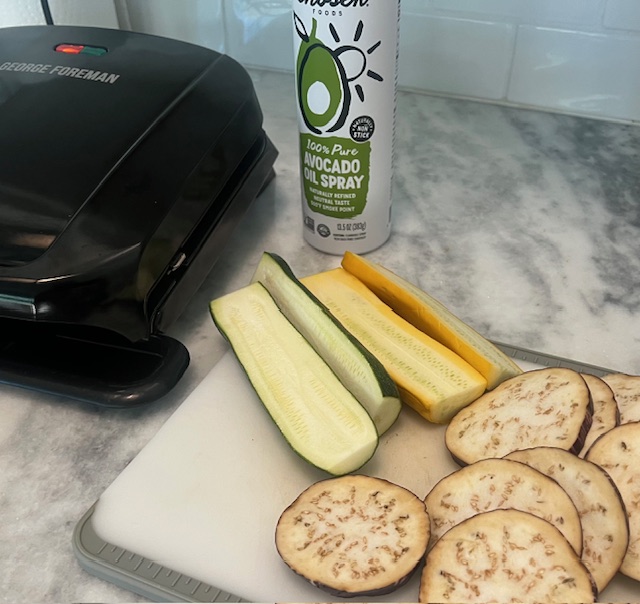 The Foreman Grill was perfect for grilling the veggies and watching over them without running back and forth outside to the barbeque.