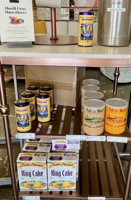The Mardi Gras items are authentic to New Orleans and include coffee from Café Du Monde and Bananas Foster Royale tea. I sampled the tea and between us – I wouldn’t pay $15 for it.